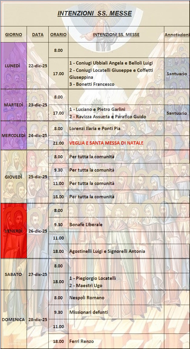 Messa 21 Dicembre Messa notte di Natale Messa di Natale 25 Dicembre