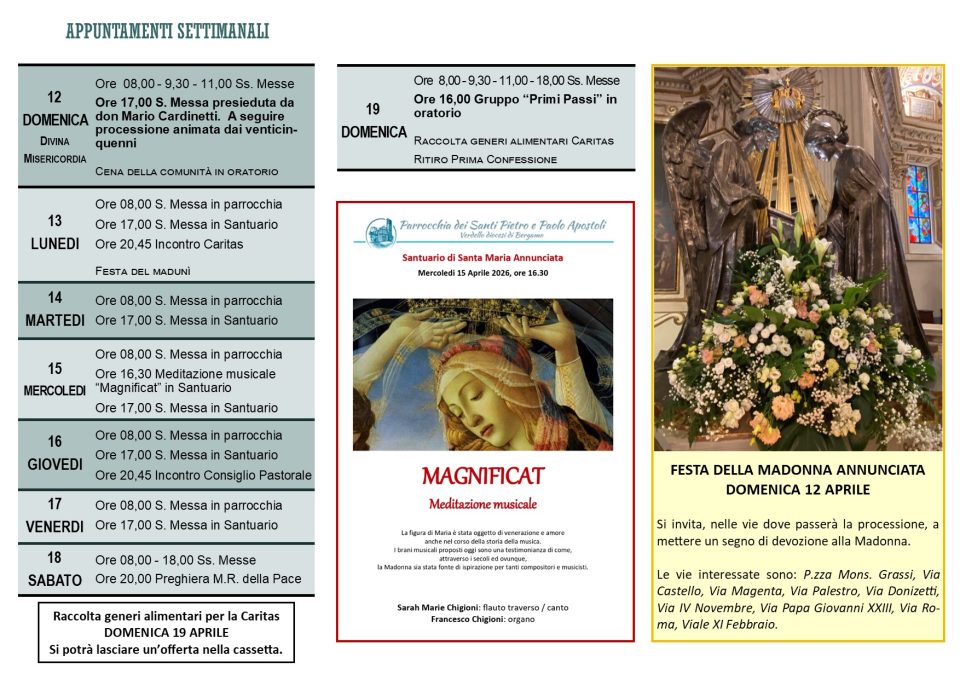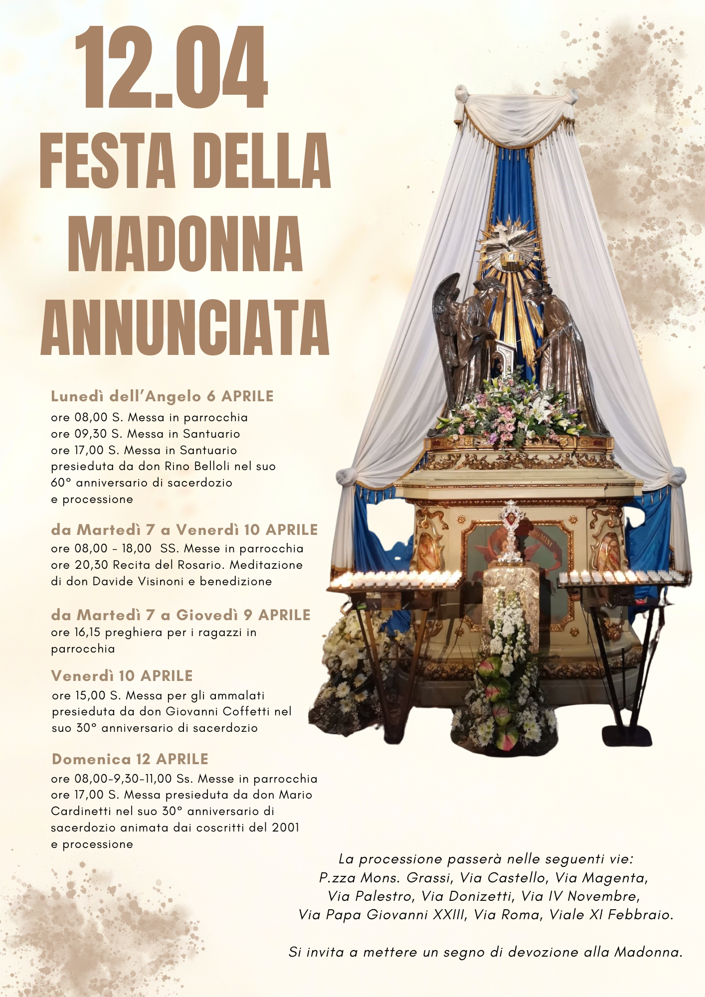 Pubblicato inArticolo Santuario Santa Maria Annunciata Il Santuario di Verdello è dedicato a Santa Maria Annunciata, solennità che viene celebrata il…